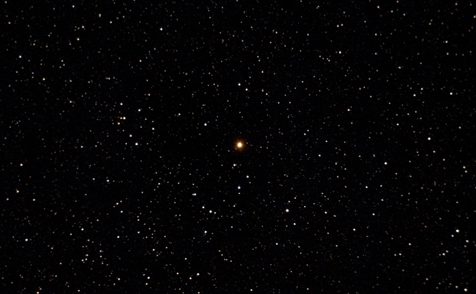 Barnards Stern zeigt eine rasche Eigenbewegung. Ich ermittelte sie astrometrisch mit 0,5% Abweichung - aus zwei Fotos, geschossen im Abstand von 6 Jahren (Daten und Ergebnis)