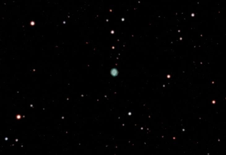 M97, der Eulennebel im Großen Bären, ist ein Planetarischer Nebel. Entfernung 2.600, Durchmesser 2 Lichtjahre. Inset: dreifach gedrizzelt und vergrößert (Daten)