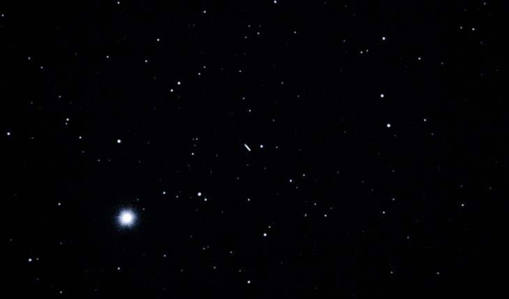 Am 10.4.2021 mit größerer Brennweite festgehalten, ist die Bewegung des Kleinplaneten Psyche deutlicher zu erkennen