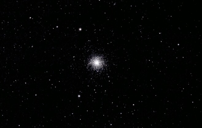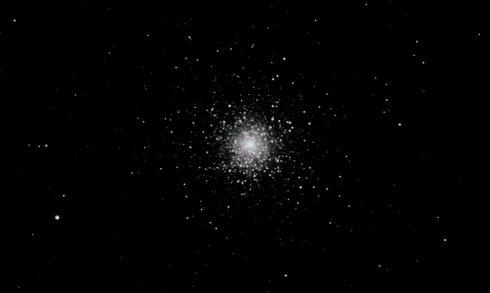 Der berühmte Kugelsternhaufen M13 im Herkules: 500.000 Sterne in 25.000 Lichtjahren Erdabstand. Eingefangen mit einem 500 mm / 5.6 Maksutov-Objektiv
