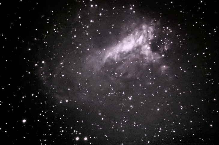 Das Kerngebiet des Gas- und Staubnebels M17 im Schützen - fotografiert unter und durch den lichtverpesteten Himmel über Wien (ohne Filter)