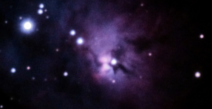 Der helle Zentralteil des Orionnebels setzt sich sogar am lichtbesudelten Himmel Wiens durch.