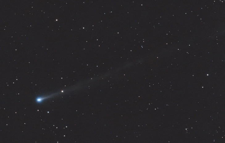 Gleichzeitig mit Lemmon stand auch der viel schwächere, rasche Komet SWAN am Himmel. Der Schweif steht aus unserem Blickwinkel hinter seinem Kopf (Daten)