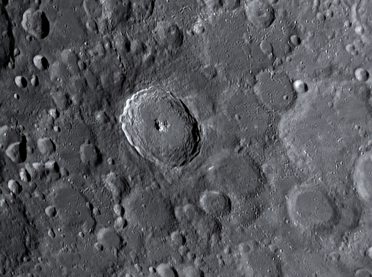 Hier die gestackte Aufnahme des Mondkraters Copernicus in Originalgröße.
