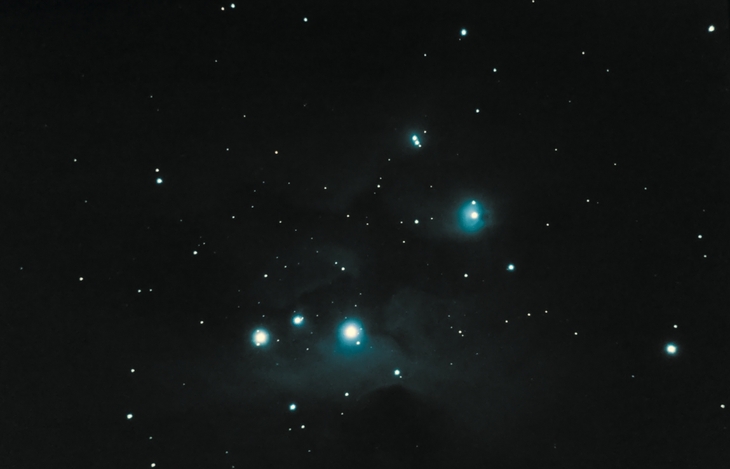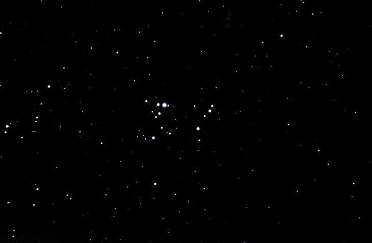 Man nennt diesen offenen Sternhaufen auch Plejaden oder Siebengestirn (f = 500 mm)