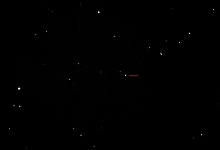 Barnards Stern zeigt eine rasche Eigenbewegung. Ich ermittelte sie astrometrisch mit 0,5% Abweichung - aus zwei Fotos, geschossen im Abstand von 6 Jahren (Daten und Ergebnis)