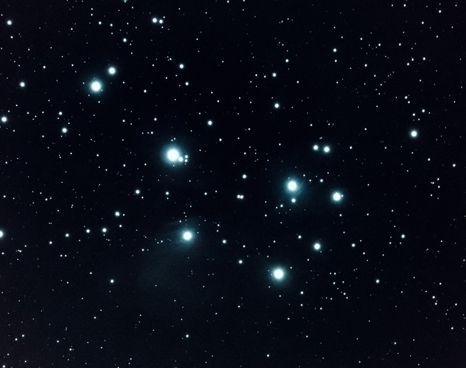 Man nennt diesen offenen Sternhaufen auch Plejaden oder Siebengestirn (f = 500 mm)