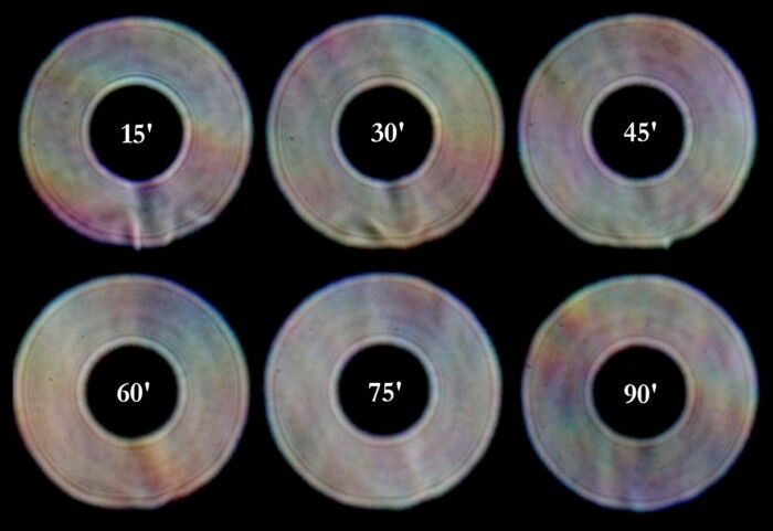 Temperatursprünge verformen den Spiegel meines 8-Zoll-Teleskops innerhalb von 90 Minuten nach 17 Grad C Absenkung: Gezeigt am farblich funkelnden Sirius
