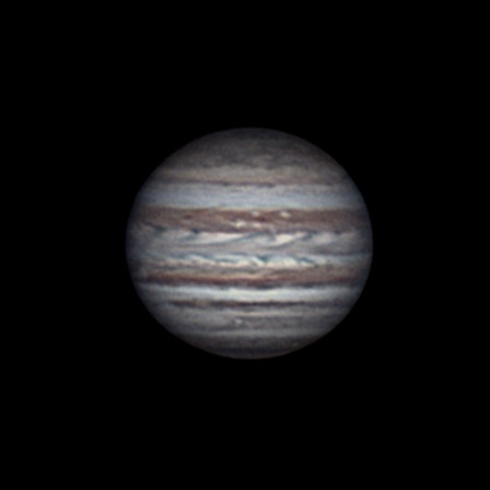 Das Seeing - wohl um 1,2" - halbiert die theoretische Auflösung meines Teleskops leider. Daher wirken die Details auf dem Jupiter trotz allem grob.