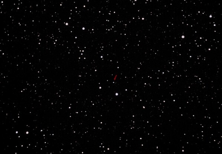 Ende Juli 2024 leuchtete die Nova Vulpeculae im Sternbild Füchschen auf. Die rote Tönung des Sterns (Bildmitte) stammt vom rasch expandierenden Wasserstoff (fotografiert am 1.8.)