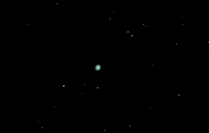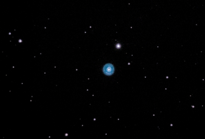 Der planetarische Nebel M57 in der Leier. Rechts unten mit 3x Drizzle