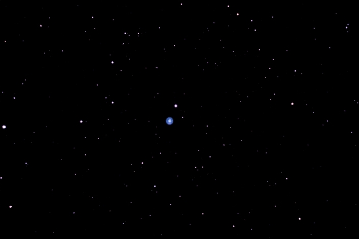 Hell, blau-grünlich aber ziemlich klein: So sind die meisten Planetarischen Nebel. Hier der sogenannte Eskimonebel in den Zwillingen.