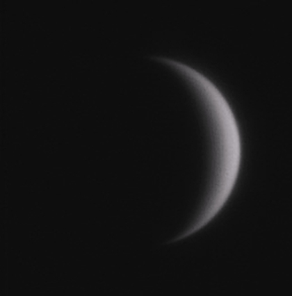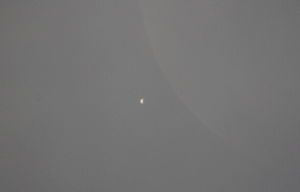 Das Venusscheibchen steht hier noch links der dunkleren Mondsichel